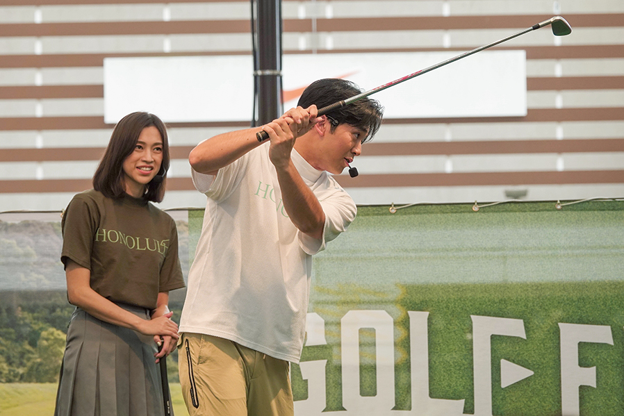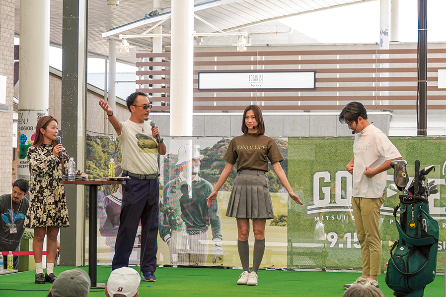 この前日のステージには“右手先生”で人気の森山錬コーチと、EVEN兄妹誌「楽園ゴルフ」のカバーガールを務めるモデルの紺野ゆりちゃんが登場。ファッションの楽しみ方やゴルフ上達のポイントについてトークを繰り広げた。