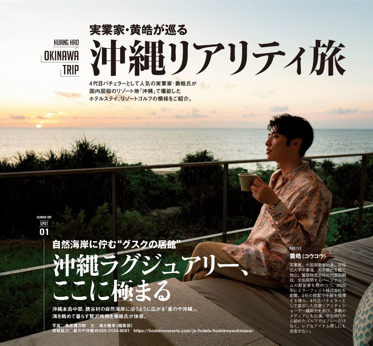 4代目バチェラーとして人気の実業家・黄皓氏が国内屈指のリゾート地「沖縄」で堪能したホテルステイ、リゾートゴルフの模様をご紹介します!
