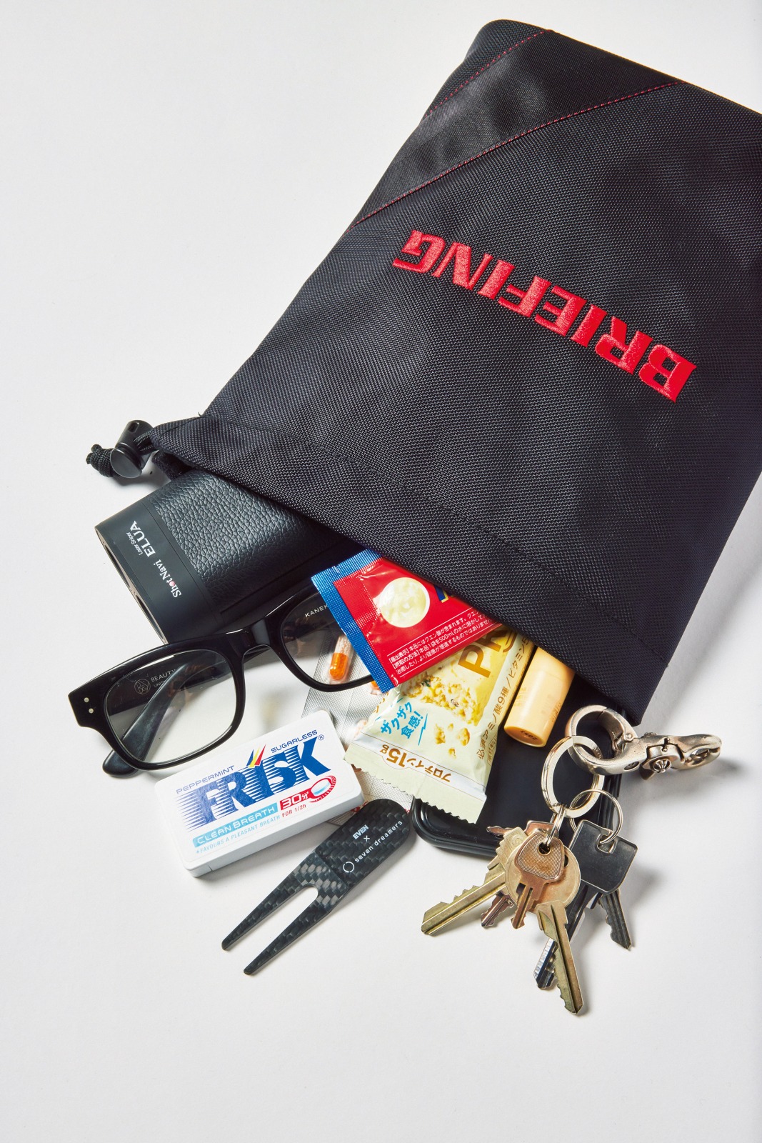 プロキャディさんは試合中は当然選手の荷物で手一杯になるのだが、自身の私物、貴重品を入れているポーチがあると聞いていた。商品化はされていなかったのだが、選手とその日を共にするキャディさんたちの為に「BRIEFING」がこのポーチを作って活動を支援していたのだ。ストーリー性あるこのアイテムに感銘を受け、EVEN編集部としてはぜひ読者の皆さんにもお届けしたく、この秋冬シーズンに形にすることができた。大きさも程よく、内側はボア素材になっているし、時計など傷をつけたくない貴重品などの収納にも大変便利。BRIEFINGお得意の軽量且つ堅牢で有名な、エアーバリスティックナイロン(USAと違ってゴルフ向けに軽量化している)素材を使用しているし、ぜひ日常に取り入れてみて欲しい。
