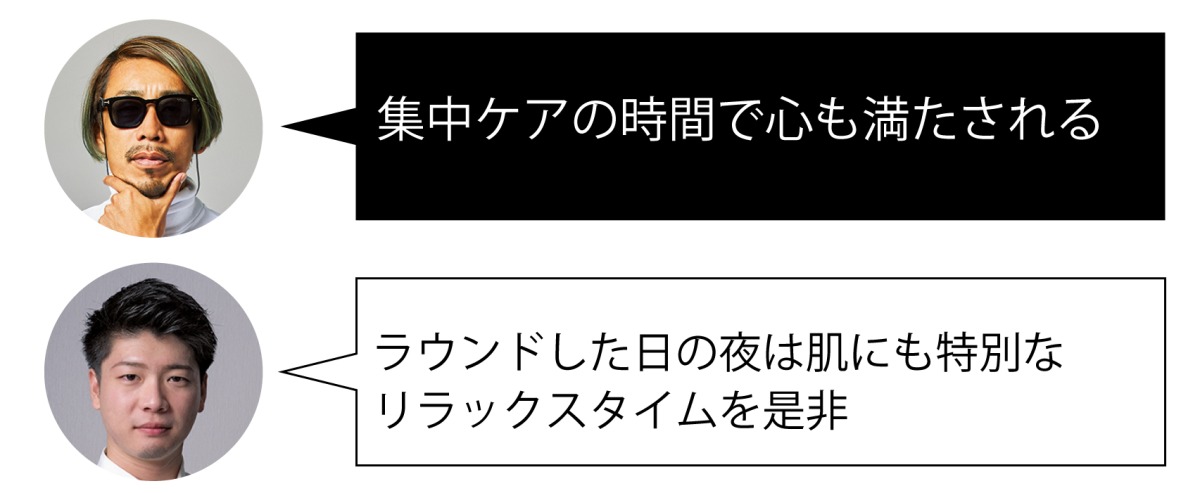 【A】何もしないと肌の老化、肌トラブルなども起こりやすい。スキンケアは外見+内面にポジティブな影響をもたらしてくれるから、内面から整えてゴルフにも臨めるはず。TEZORO for MEN