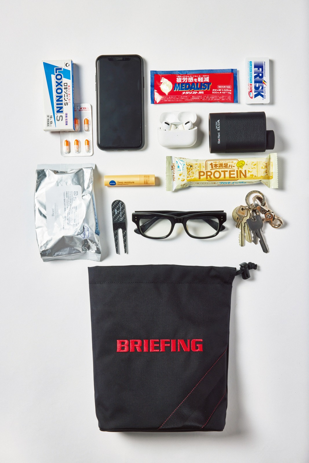 プロキャディさんは試合中は当然選手の荷物で手一杯になるのだが、自身の私物、貴重品を入れているポーチがあると聞いていた。商品化はされていなかったのだが、選手とその日を共にするキャディさんたちの為に「BRIEFING」がこのポーチを作って活動を支援していたのだ。ストーリー性あるこのアイテムに感銘を受け、EVEN編集部としてはぜひ読者の皆さんにもお届けしたく、この秋冬シーズンに形にすることができた。大きさも程よく、内側はボア素材になっているし、時計など傷をつけたくない貴重品などの収納にも大変便利。BRIEFINGお得意の軽量且つ堅牢で有名な、エアーバリスティックナイロン(USAと違ってゴルフ向けに軽量化している)素材を使用しているし、ぜひ日常に取り入れてみて欲しい。