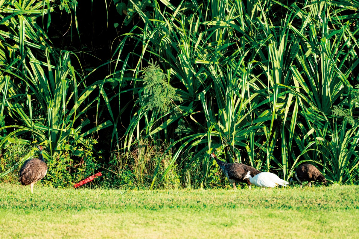 コース内には熱帯地方ならではの野鳥の姿も。孔雀の多さは小浜島カントリークラブの特徴の一つ。昨年生まれた珍しい白い孔雀を見つけたゴルファーには幸運が!?