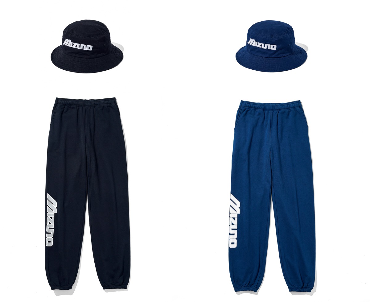 MIZUNOクラシックロゴ エンブロイダリー バケットハット/MIZUNOクラシックロゴ プリントスウェットパンツ