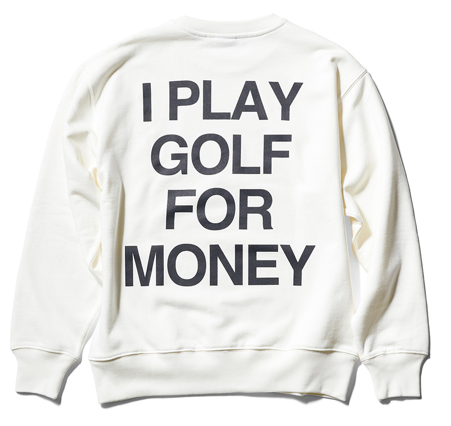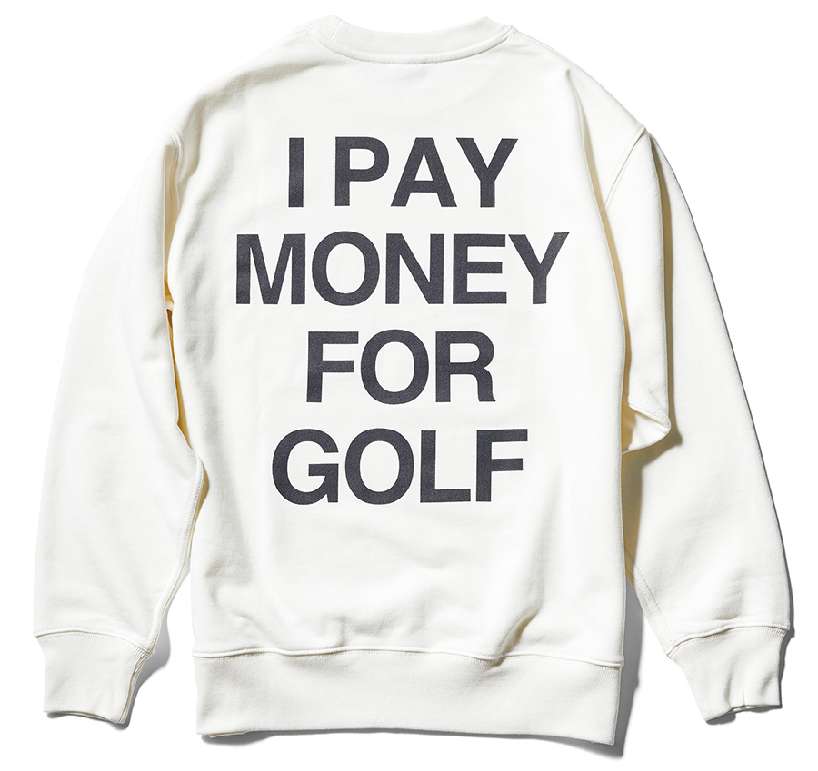 こんなウィットに富んだバックプリントもたまにはいいだろう。一瞬??ってなるから。遊び心の詰まったアイテムはスウェット以外にソックスやバケットハット、ともにブラックとホワイトのラインナップになっている。