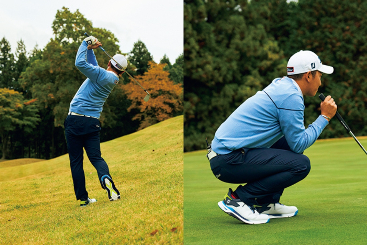 「スパイクよりグリップ力があるように感じました。足と靴とのホールド感、スイング中も靴の中で足が動かないところ、どんなライからでも滑らないところ、1ラウンドしても疲れないところが魅力だと思います」