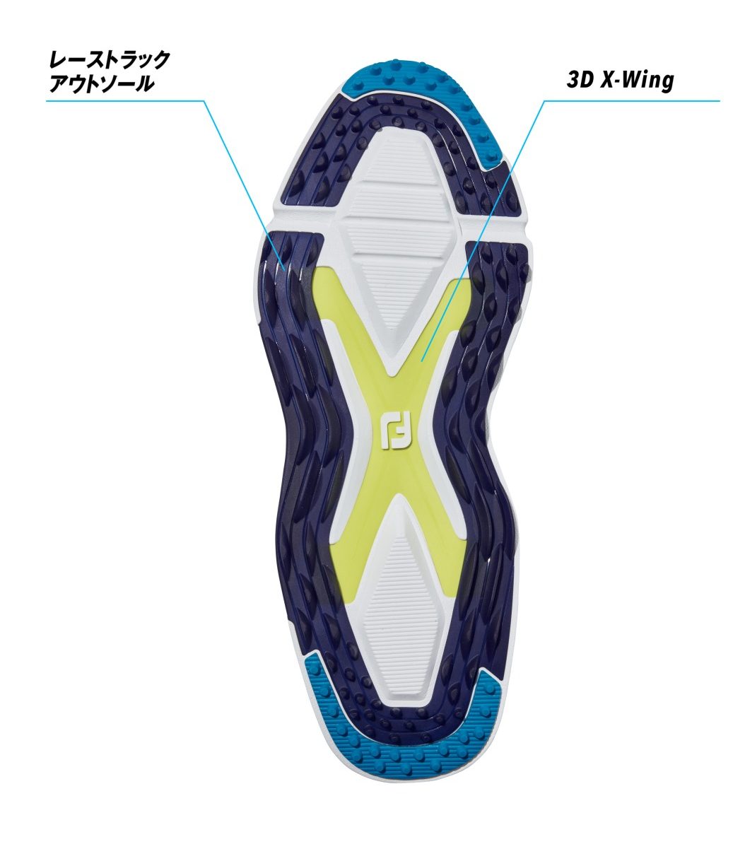 スパイクレスのツアー人気に火をつけた「PRO/SL」シリーズの最新機種。新構造の「3DX-Wing」と「レーストラックアウトソール」が、プロを唸らせる卓越したグリップ力を発揮。ホワイト/ネイビー/ブルー、ホワイト/ブラック/レッド、ブラック/ホワイト(4月中旬発売予定)の3色展開。