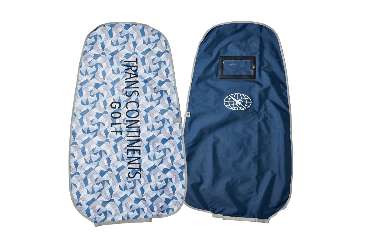 旅ゴルフの必須アイテムとなるトラベルカバー。独創的なオリジナル幾何学模様は、旅先のターンテーブルでも直ぐに認識できるデザイン。11,000円