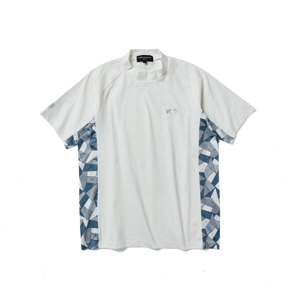 今季のモチーフとなる幾何学模様がコーデの主役を飾るポロシャツ。メッシュ素材の通気性の良さに加え、涼しく軽量で夏ゴルフも快適。6,500円