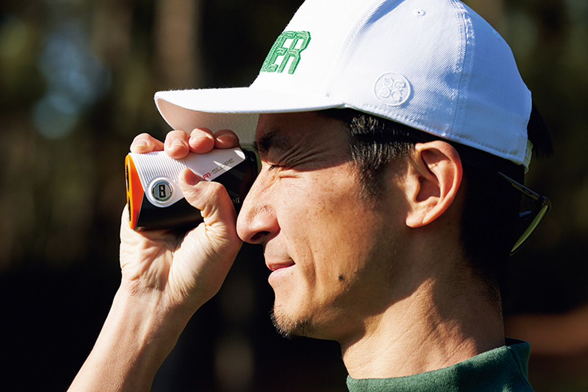 ラウンドで使用したEVENチームのイトウは「ポケットに入れてもかさばらないので、サッと取り出してサッと測れます。こんなブッシュネルを待ってました!」と絶賛。