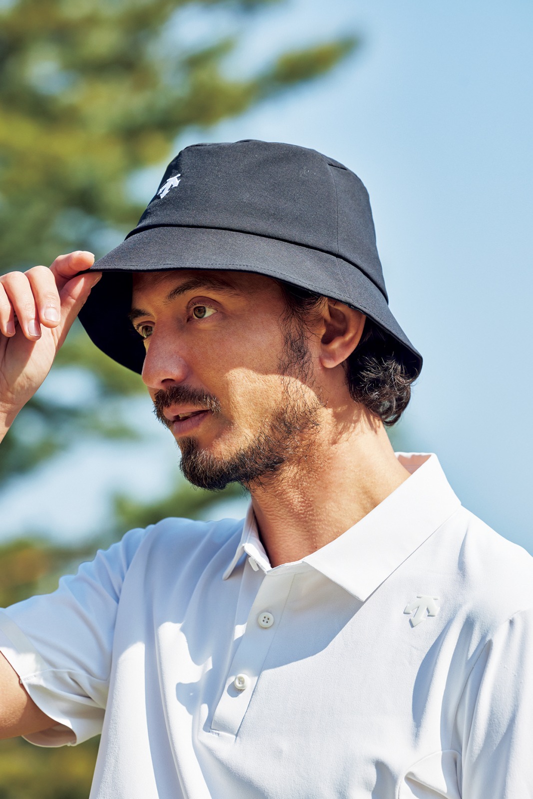 EVENと「デサントゴルフ」とのコラボで生まれた「DSG コーデュラ撥水バケットハット」は、強い撥水性を備えた素材で急な荒天にも対応可能。