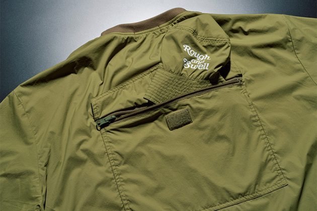 トップスの背中に配置されたポケットに全アイテムを収納できるポケッタブル仕様。