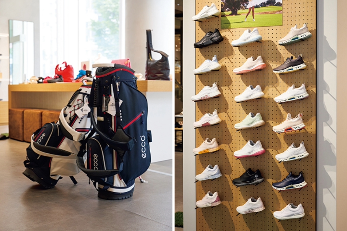渋谷方面から青山へ向かうと手前にAoビルが見えてくる。そこの1Fにあるのがデンマーク発祥のシューズブランド「エコー」。ゴルフシューズもその品質やデザインが人気で、最新作がメンズ、レディスとわけられ、壁面にレイアウトされる。すべてのカラバリが見て取れ、きっとお気に入りが見つかるはず。他にもシューケアグッズやソックスに革小物まで。キャディバッグ(42,900円)は直営店のみでの販売。
