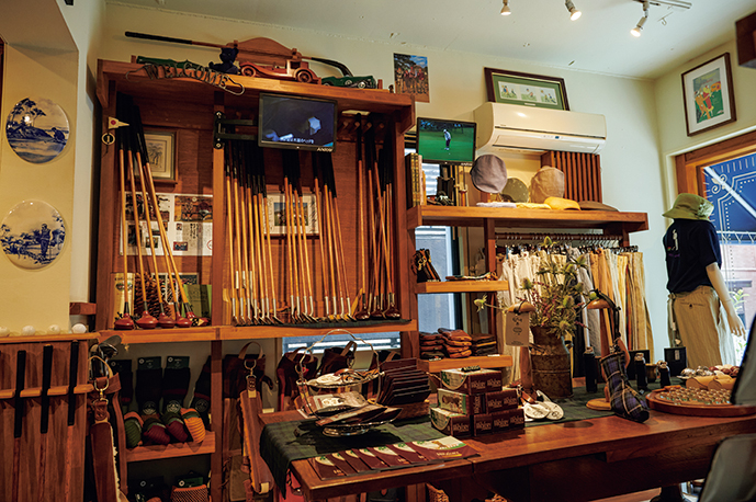 シャフトがクルミ科の木、ヒッコリーで造られた伝統的なゴルフクラブでプレーしながら、友情とおしゃれを楽しもうというスタイルを提案するショップ。1881年に設立されたセントアンドリュースの工房から届くハンドメイドクラブをはじめ、ゴルフカルチャーの原点ともいえるウェアやバッグ、小物たちが賑やかに並ぶ。ミスショットは笑い飛ばし、ナイスショットを称えあう、そんな遊び心を秘めたヒッコリーゴルフへの扉を開きに行こう。