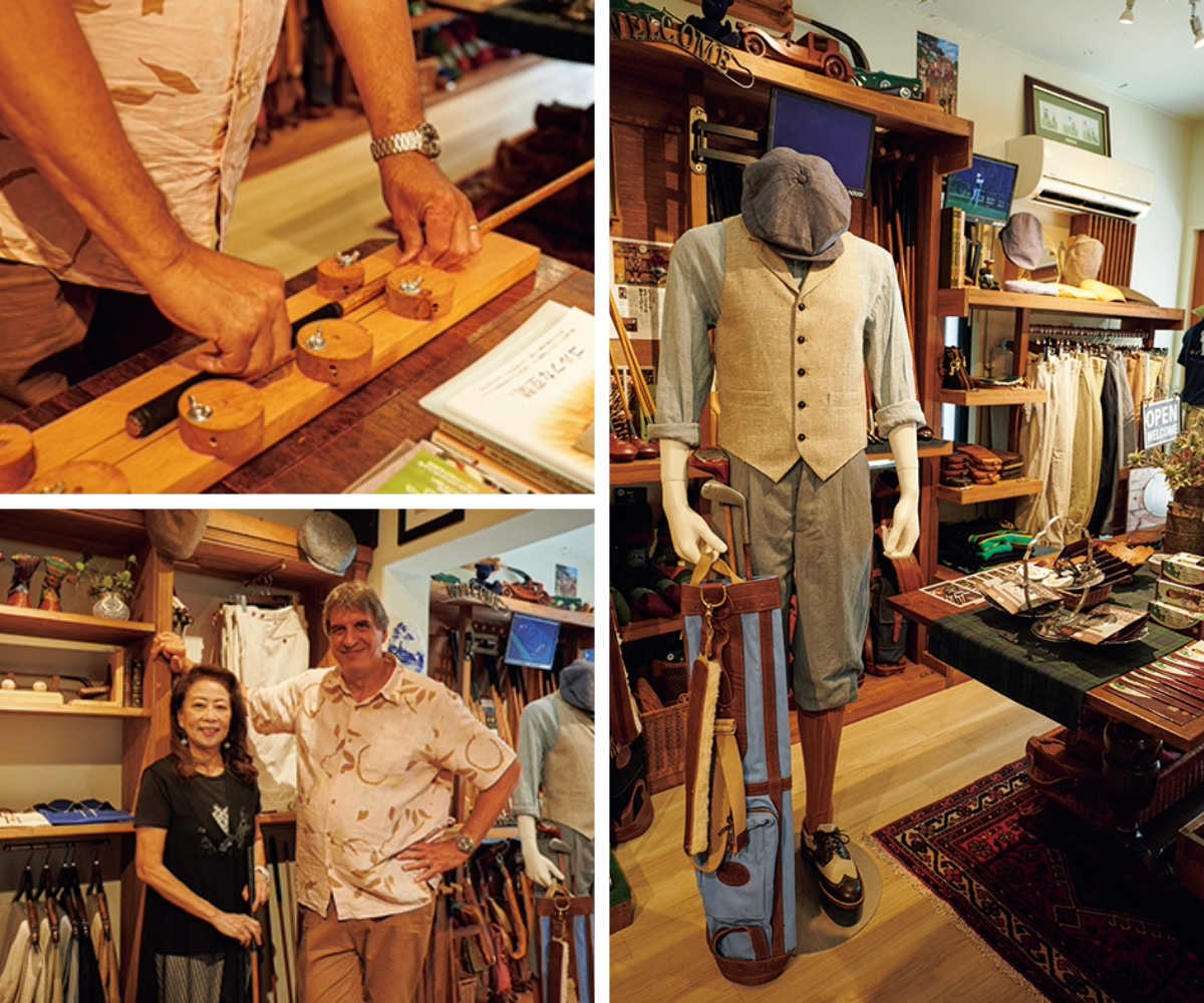 ヒッコリースタイルのニッカボッカをはじめ、ウェアからギアまでトータルに揃う。工房のビデオを見ながらクラブ説明を受けられ、シャフトの硬さの測り方もクラシック。オーナー・アレックスさんのトークも醍醐味。