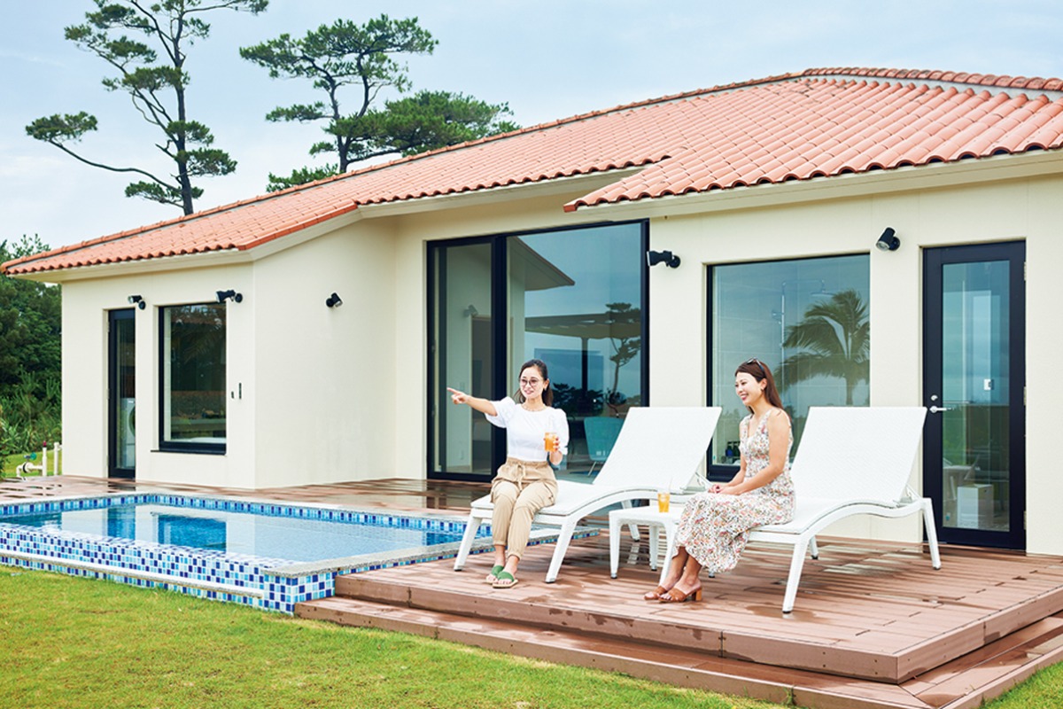 2022年8月にグランドオープンしたプレミアムコテージ。リビングルーム、2ベッドルーム、2バスルームに加え、プールやバーベキューテラス付きのプライベートガーデンを備え、最大8名まで宿泊できる。