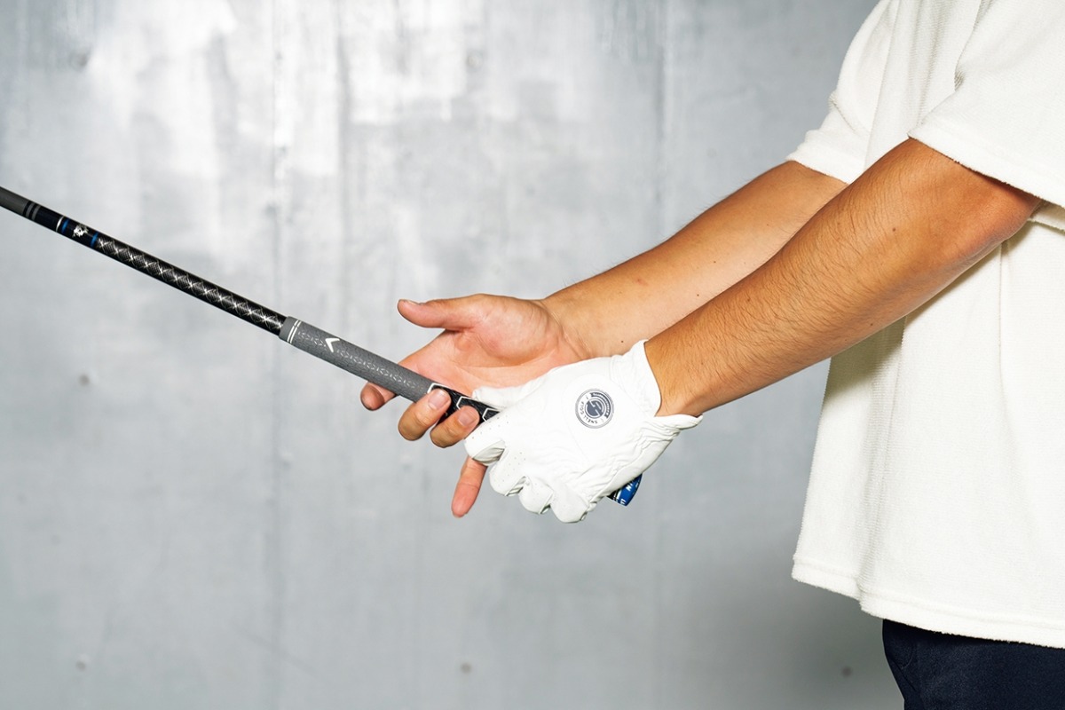 軽いものを速く振ろうとすると力だけでは難しいことがわかる。クラブのヘッド側を持ち、ビュン!と音が鳴るように振るとヘッドが加速するポイントがつかめ、ヘッドスピードアップが期待できる。