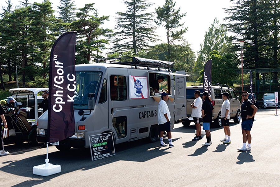 プロショップオープンに伴うイベントが2024年8月上旬に開催された。まだまだ暑かったがラッピングされたケータリングカーが喉を潤してくれたし、クラブハウス内のフォトコール、練習場、ティーングエリア、パーティーエリアと至るところに「K.C.C」と「Cph/Golf」のロゴが散りばめられ、暑さも忘れて楽しんだ。