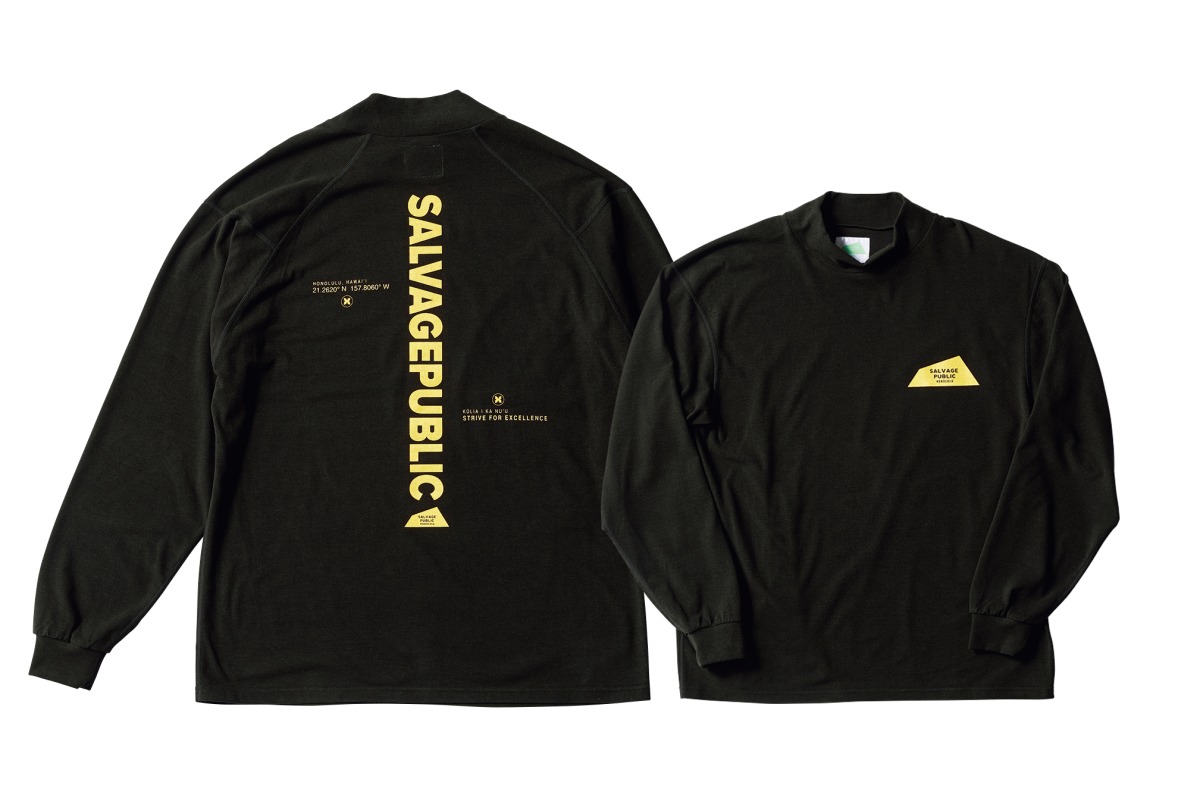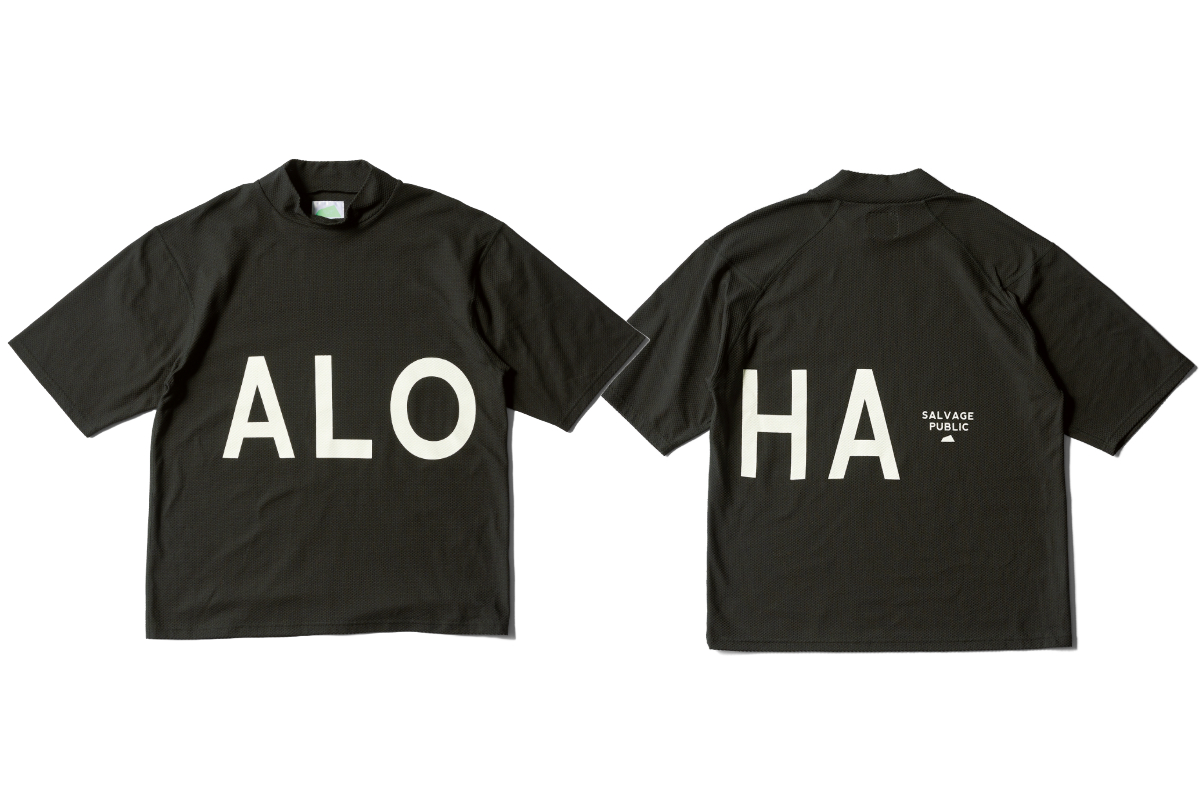 再生ポリエステルを使用したCOOLMAX® EcoMade糸をブレンドすることで吸水速乾性も向上している。ボックスフィットのリラックスした雰囲気はハワイらしい仕上がりで、「SALVAGE PUBLIC Kolepa」を代表するスタイルとなっている。“BIG ALOHA”のプリントが前後に入り、インパクト大の人気デザイン。