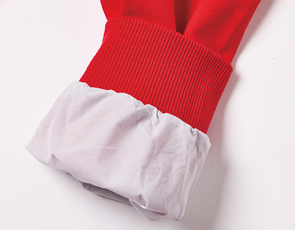 袖に防風裏地を仕込んでおり、中わたのベストなどと合わせるだけで十分な防寒対策になる。ハイネックセーター23,100円