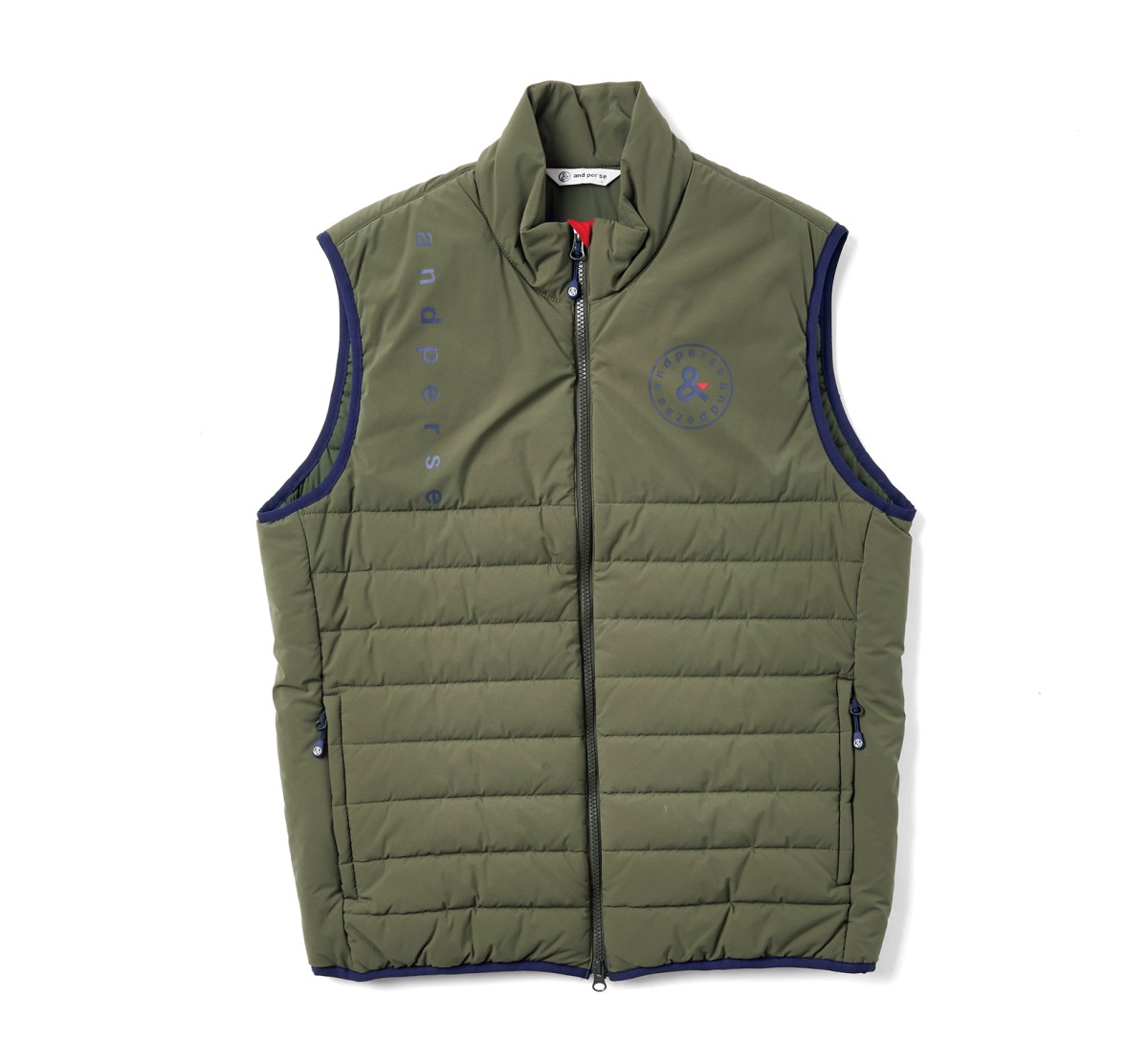 マルチストレッチ・はっ水・保温機能を備えた中わたベスト。中空構造糸「エアロカプセル」を中わたに使用している。中わたベスト24,200円