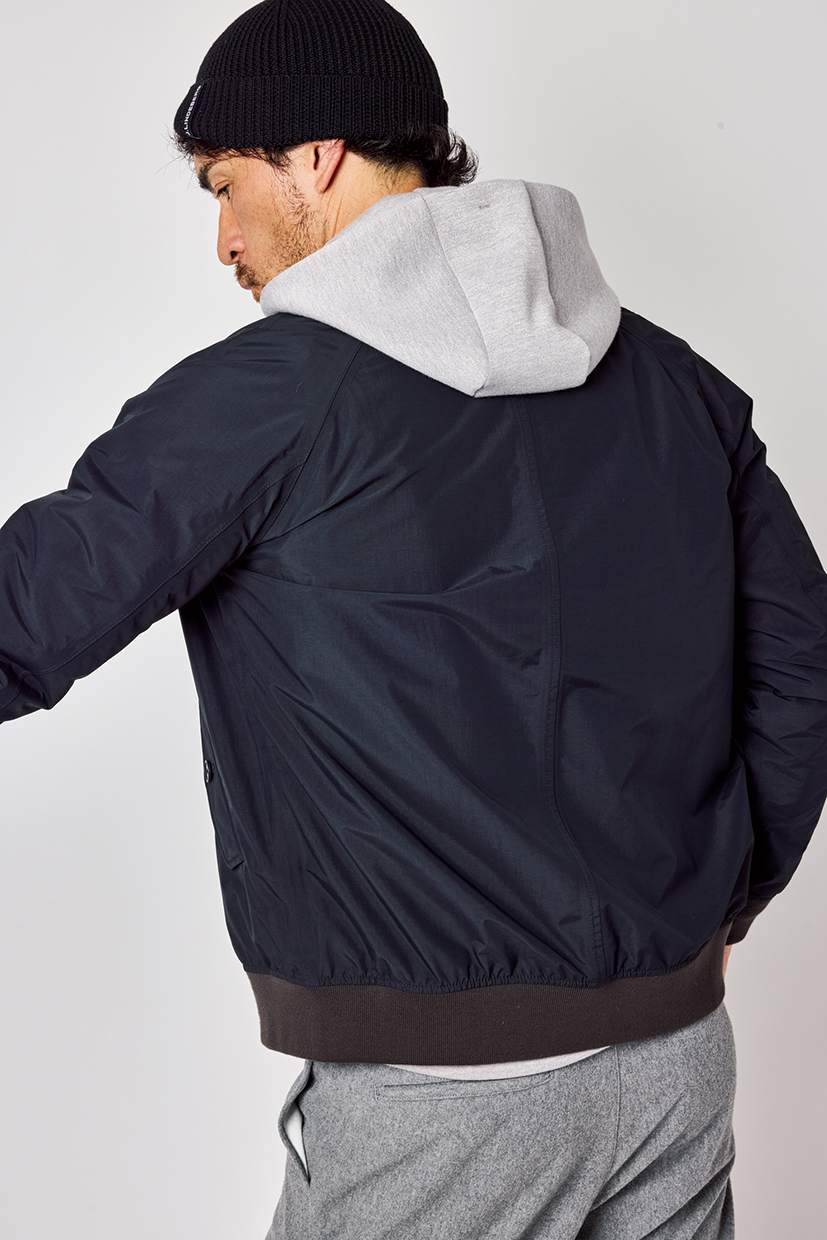 コーデの印象をリフレッシュするなら、定番のナイロン素材でも一味違った色やテクスチャーのモデルが狙い目。さらに定番的な無地モノとは異なる色柄タイプを選べば、よりひねりの効いたスタイリングを表現できる。33,000円(ハイプゴルフ[ジュンカスタマーセンター])