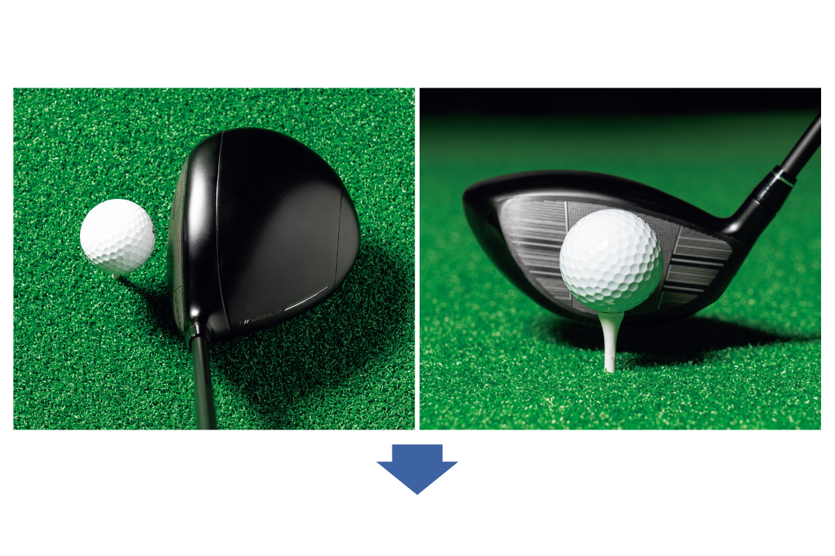 ティーアップしたボールの高さと地面の高さとの高低差によって、アドレス目線ではボールとヘッドの位置関係に微妙な距離感のズレが発生します。ヘッドを浮かせたアドレスと地面に付けたアドレスの写真を参考に、自身の打点と照らし合わせつつ、フィーリングの合うアドレスを確立して理想の弾道を手に入れてください。
