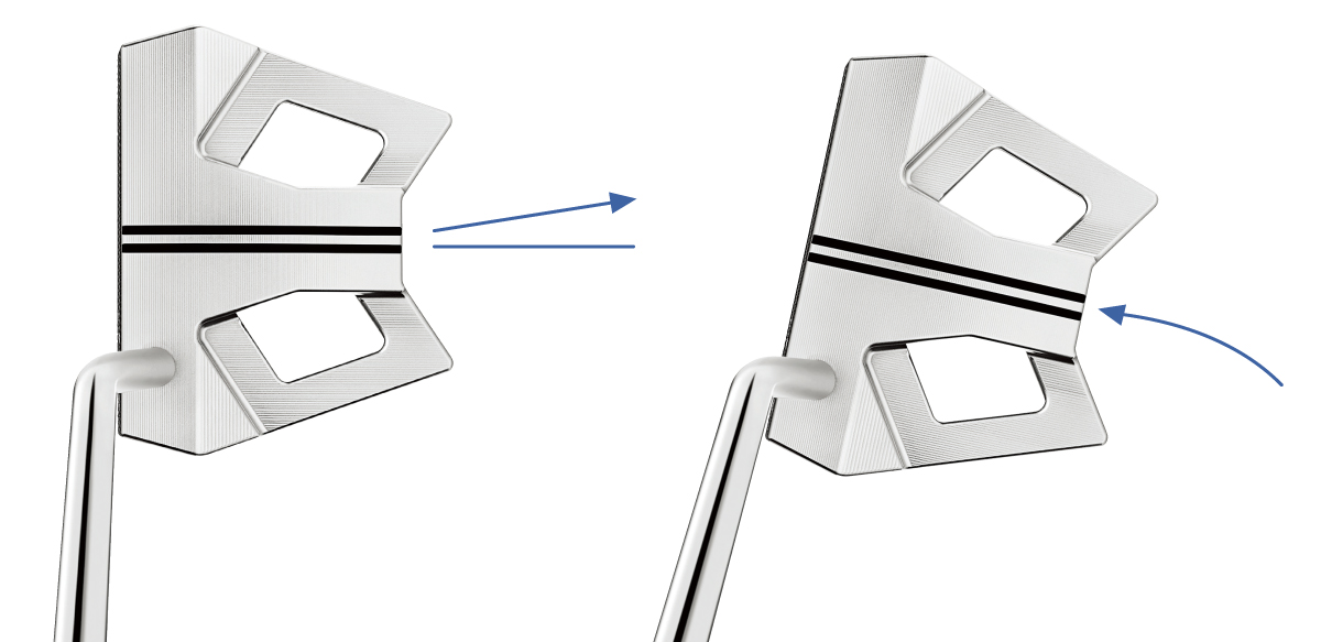 マレット型パターの最大のメリットは、昨今のドライバーヘッドと同様に慣性モーメントが大きくなることで、ストロークのブレやミスヒットに強くなる点です。直線に近い軌道でヘッドを動かしてストロークすることで、慣性モーメントの恩恵による安定したパッティングが行いやすくなります。