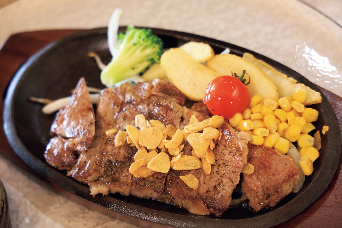 数量限定の「牛ロースステーキ膳」はレストランの人気メニューのひとつ。