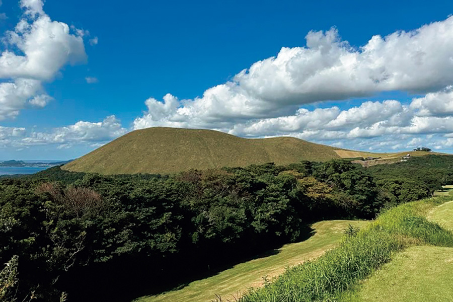 さて、ゴルフだ。五島カントリークラブは空港から5分の、火ノ岳西側に位置する好立地。何よりの名物は景観である。高台からの大パノラマの先に東シナ海を見下ろし、目の前には福江島の象徴「鬼岳」を望む。空は広く、まさに“雄大”。18ホールズは6774ヤードで、アップダウンにドッグレッグ、ハザードも巧みに配され、手練れなゴルファーも十分に楽しめるチャレンジングなレイアウトである。海に囲まれた離島ながら、芝のコンディションも上々なのには驚かされた。