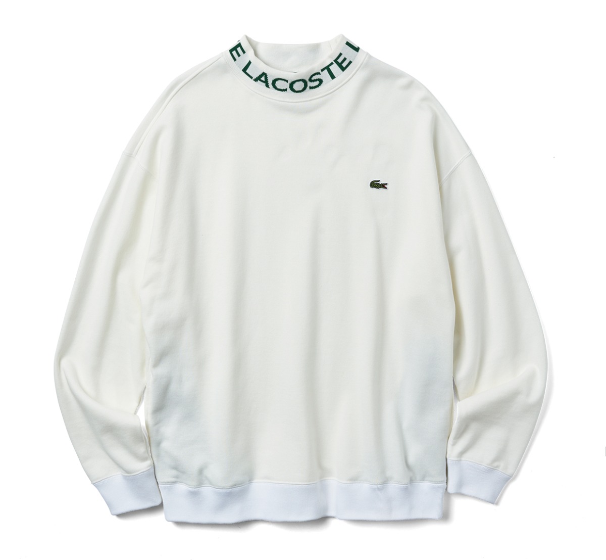 これだけ気候変動が際立ってくると、ここ数年“ポストポロシャツ”の最右翼だったモックネックは、冬以外、着られなくなるかも!? 「LACOSTE for BEAMS GOLF」のモックネックスウェット23,100円 問:ビームス ゴルフ 有楽町