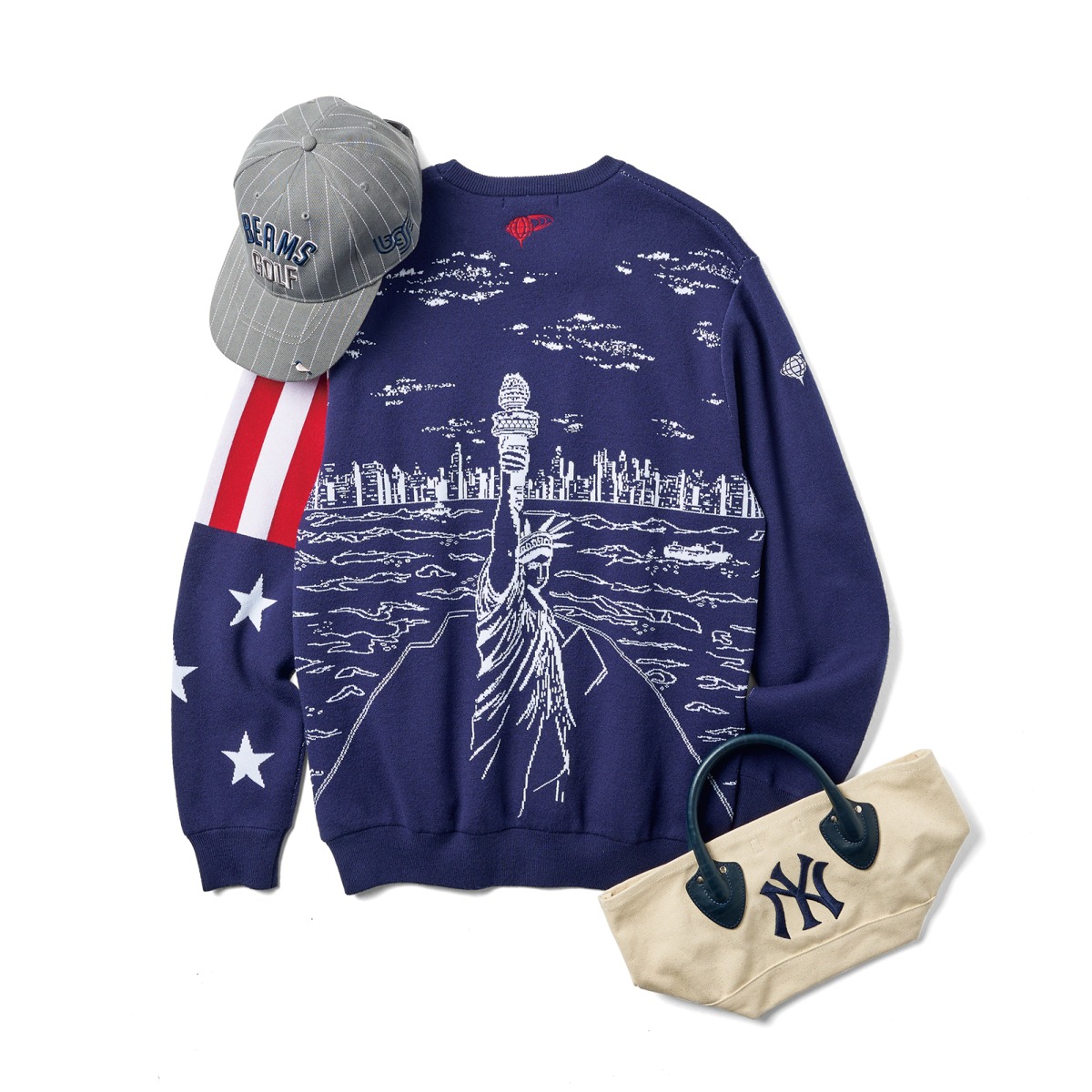 メジャーリーグのワールドシリーズの盛り上がりをどこまで予見していたかはさておき、米NYを今季のシーズンテーマに掲げて展開したビームスゴルフの先見性は見事だった。キャップ7,150円、ニット30,800円、カートバッグ13,200円 問:ビームス ゴルフ 有楽町