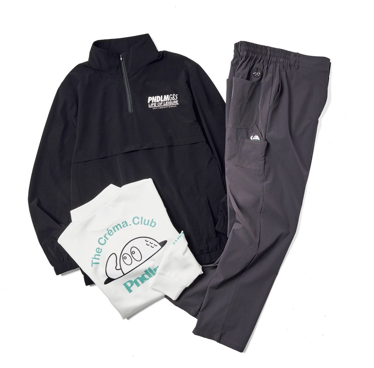 スケートボードやストリートカルチャーと伝統的なゴルフスタイルの融合を提案するオンライン中心のショップ。動きやすい機能素材やスケーターっぽいロンTなど個性的。プルオーバーブルゾン16,500円、ロングスリーブモックネックシャツ12,600円、パンツ15,400円 問:Pendulum