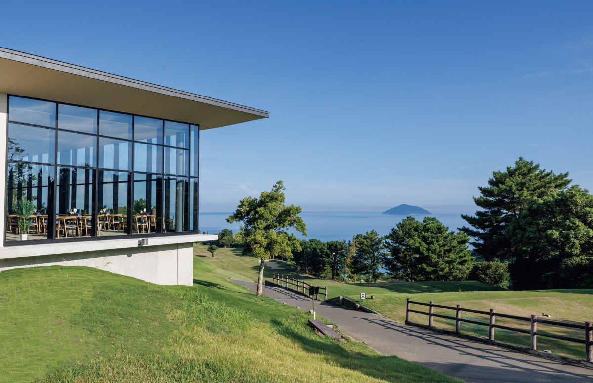 すべてのホールから海を望めるロケーションが魅力で、玄界灘へ向かってのティショットは爽快のひとこと。2024年9月にリニューアルしたばかりのクラブハウスは、利便性やエンターテインメント性を重視し、プレー以外でも楽しく快適に過ごせる機能的な平屋造りとなっている。