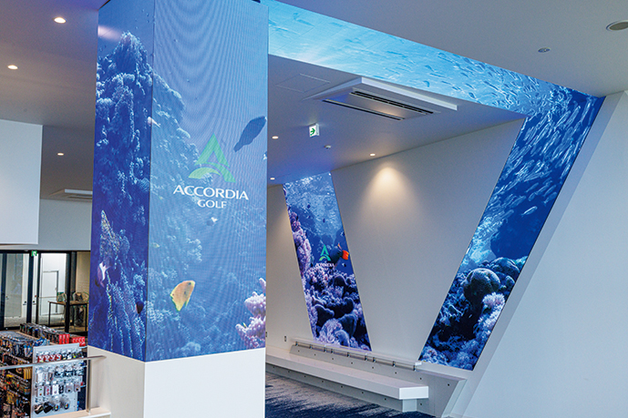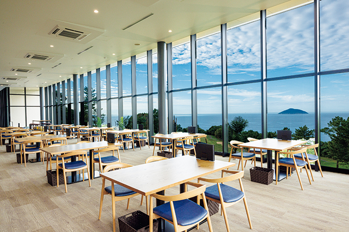 すべてのホールから海を望めるロケーションが魅力で、玄界灘へ向かってのティショットは爽快のひとこと。2024年9月にリニューアルしたばかりのクラブハウスは、利便性やエンターテインメント性を重視し、プレー以外でも楽しく快適に過ごせる機能的な平屋造りとなっている。