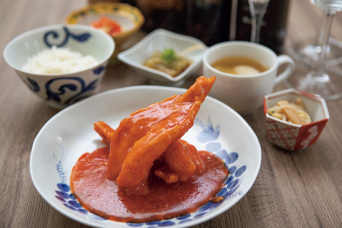 写真上から鶏そば、黒酢の酢豚、大エビのチリソース。いずれも一度は食したい人気のメニューだ。