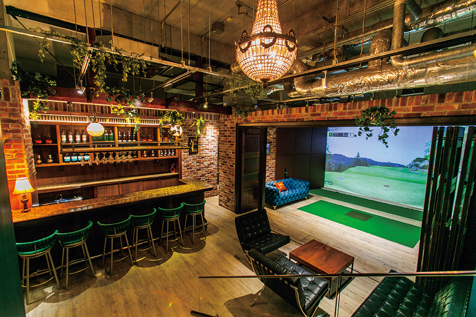 バーラウンジとゴルフレンジが利用できるタイムシェアオーナーブース。最新シミュレーターにより、実際のフィールドと同じようなリアルなゴルフエンターテインメントを楽しめる。