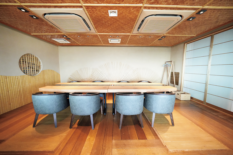 個室でも床を上げて半磨りガラスを仕切りに採用することで、プライバシーを保ちつつ景色を楽しめるようになった。