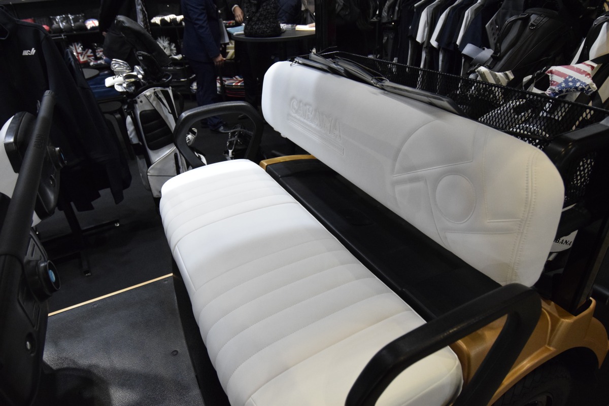 「カバナ」は日本におけるゴルフカートカスタムのトップランナーだ。全国各地のゴルフ場などから依頼を受け、カートの外装ラッピングやシートカバーの施工などを行っている。国内のゴルフカートは日立製かヤマハ製が多く、それにフィットするシートカバーをラインナップ。国内自社工場で縫製した質感の高いPVCシートカバーは、リーズナブルでオリジナルのデザインにも対応する。レザータッチとステッチによる上質な仕上げは、誰もが知るあの名門コースのカートにも採用されている。たいていのゴルファーなら「このシートの座り心地知ってる」となるはずだ。まず驚くのはその質感だ。しっとりしながらサラっと感もある新素材は、素材にシリコーンを含ませたもの。単に質感を高めただけでなく、高い耐熱性、耐候性、撥水性、防汚性を実現。実は、彼らのゴルフ用カスタムカートには、シートヒーターのラインナップがあり、発熱に対する耐久性を高めるための採用でもあるという。また、素材には抗菌剤も含有、耐薬品性にも優れ、環境負荷も少ないなど、まさにゴルフカートのシートカバーとしてこれ以上ない進化を遂げている。カスタムというとド派手なものを想像するが全般的に上質な印象で、それが名門コースでの施工実績につながってることもあるだろう。カバーやラッピングなので原状復帰が容易という点も優秀だ。カスタム可能なマイゴルフカートを所有しているゴルファーは限られているだろうが、今後全国のゴルフ場のカートに採用されていくはずなので注目してほしい。