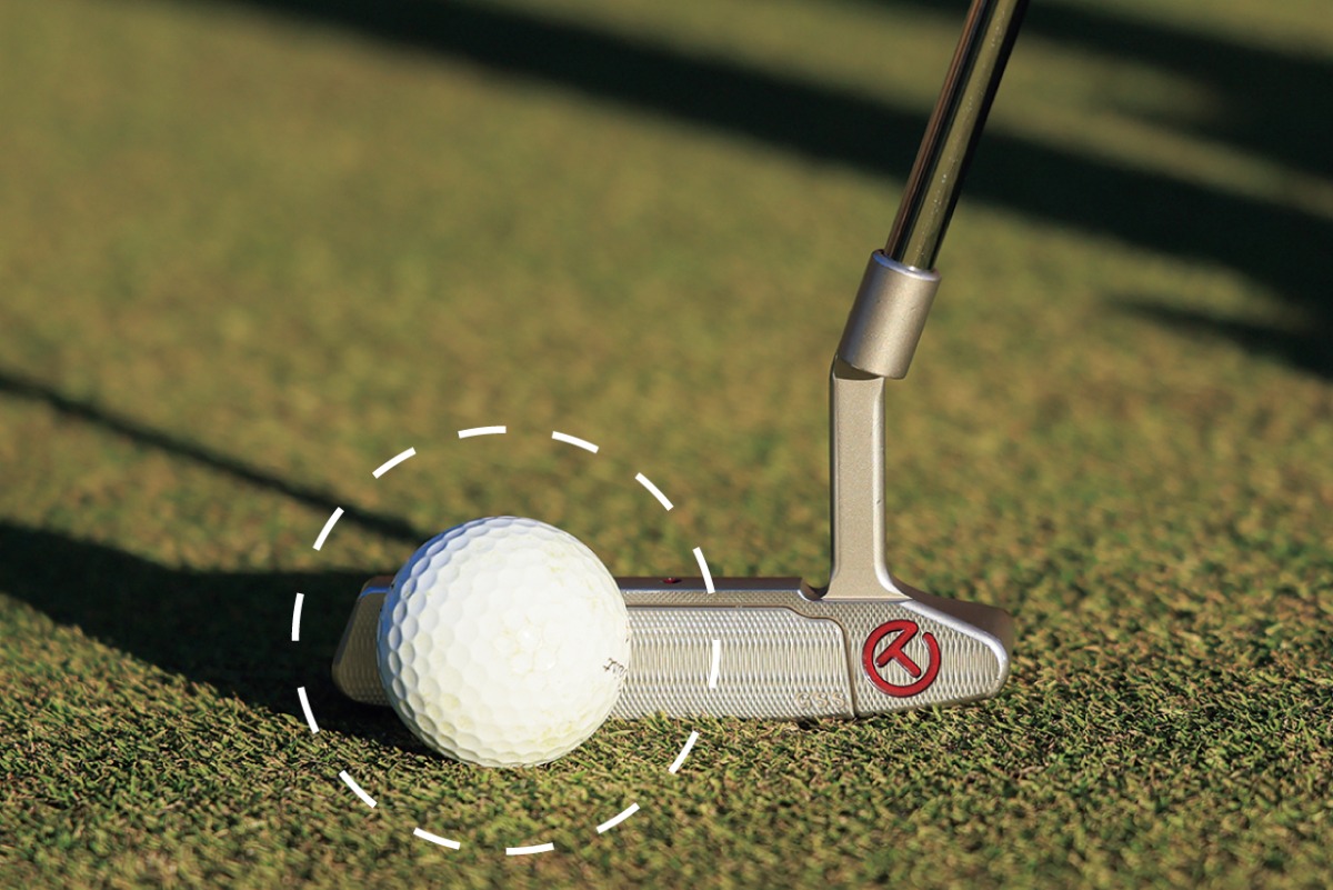 あえてパターの芯を外してトゥ寄りでヒットすることで、転がりの弱い球を打つ方法。ツアープロも実践している。トゥ寄りに球をセットする以外は、通常のパッティングと同様だ。