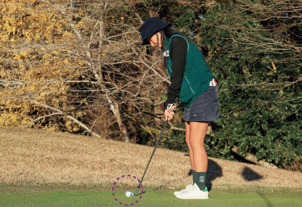 スコアメイクの鍵はやはりショートゲームだ。ここでは冬の薄芝でもミスしないアプローチのテクニックと、なかなかタッチを合わせるのが難しい下りのパッティングの攻略法について教えてもらった。