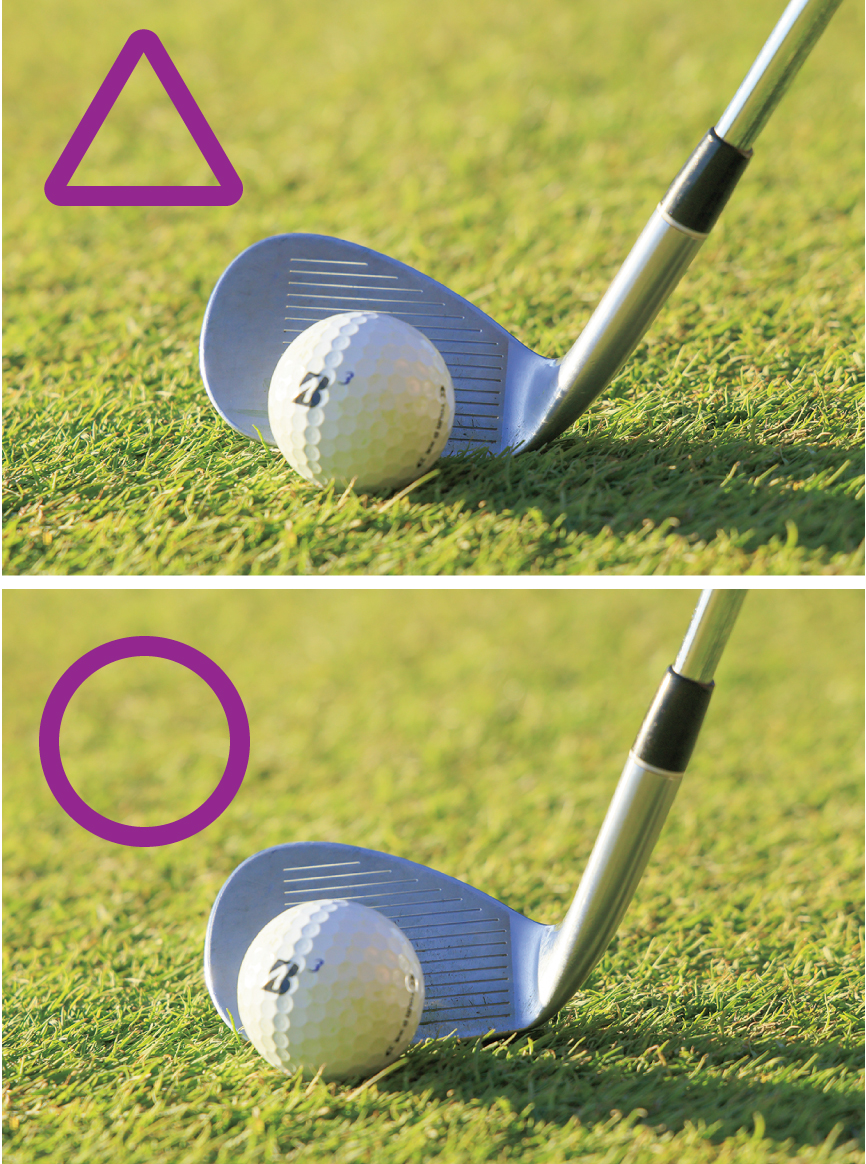 ややトゥ寄りでボールを打つことになるので、芯で打った時ほど転がらず、下り傾斜でのアプローチでも有効な打ち方だ。