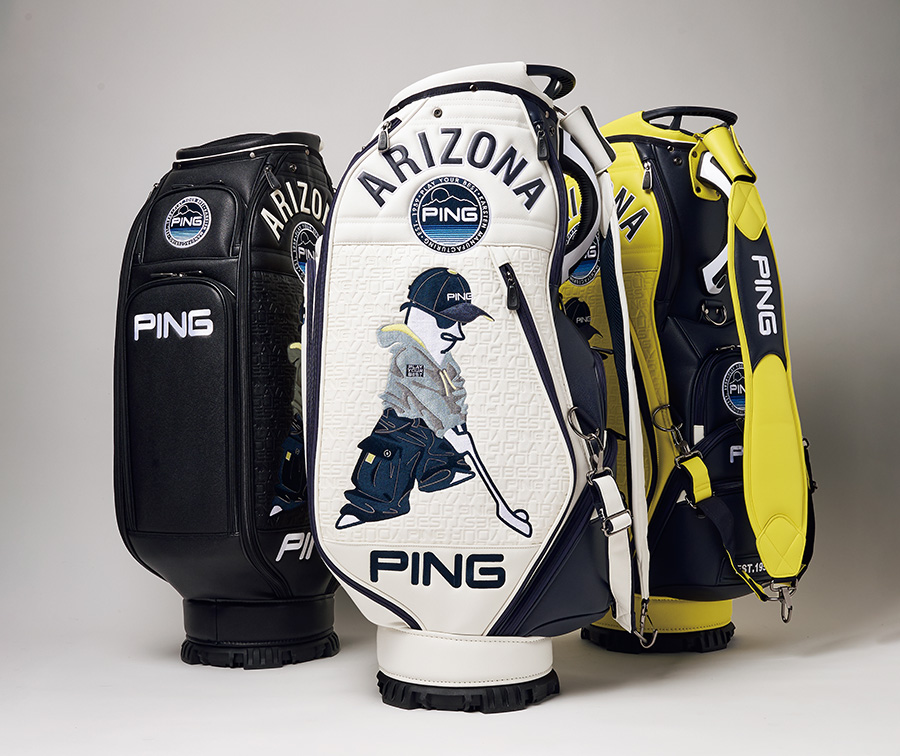 そんなMr.PINGをモチーフにしたキャディバッグが登場。高級感のある合成皮革にMr.PINGの刺繍が圧倒的な存在感で、ストリートカジュアルなコーディネートのMr.PINGは珍しいため、ファンにはたまらない逸品となっている。同デザインのヘッドカバーやトートバッグなどもラインナップされているので、そろえて使いたい。