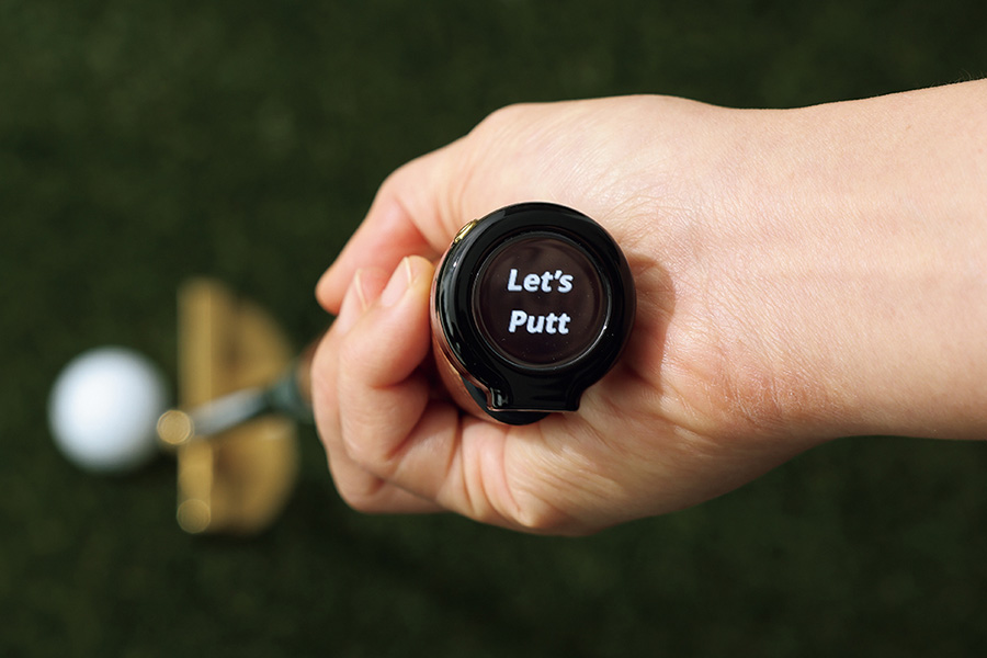高精度のセンサーが内蔵されていて、素振りするだけでも予想距離とインパクト時のフェース角が計測される。今の自分にはスコアアップに一番近道な練習ができるだろう。スコアアップへの近道はパット数だ!