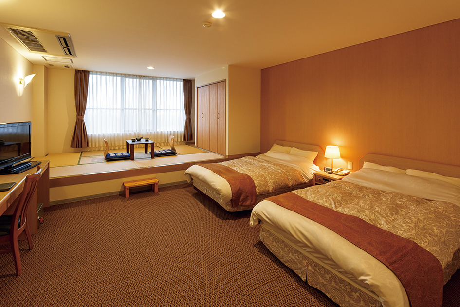 敷地内にロッジタイプの別府ゴルフホテルを併設。シングルルームとツインルームを完備しており、ニーズに応じてチョイスできる。