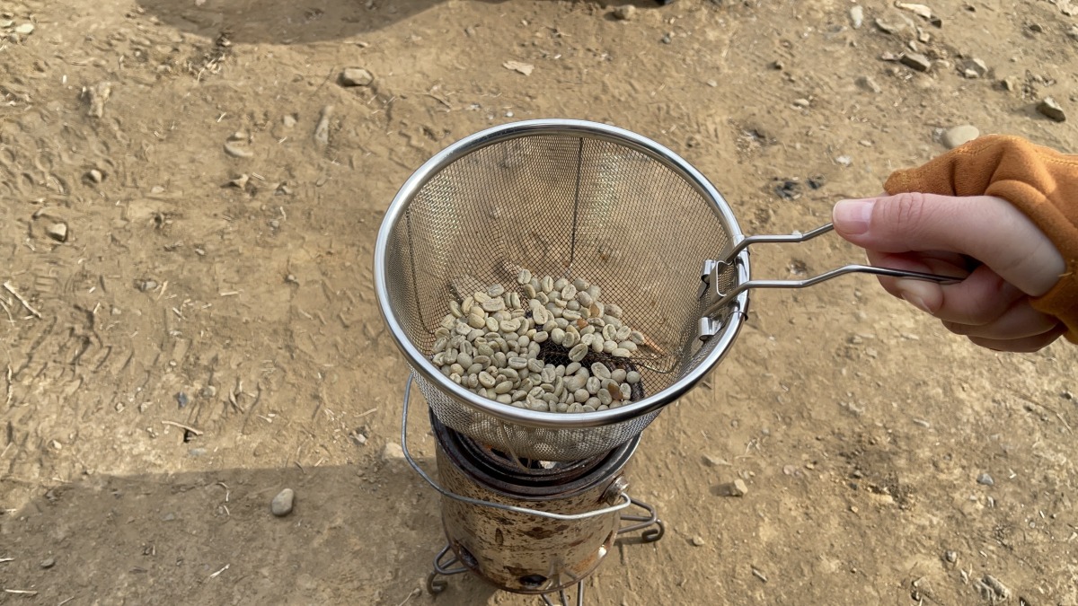 炭火ではなくお家のコンロでもできますが、チャフ(豆の薄皮)が紙吹雪のように舞い散って後片付けが大変になるので、屋外での焙煎をおすすめします(笑)。