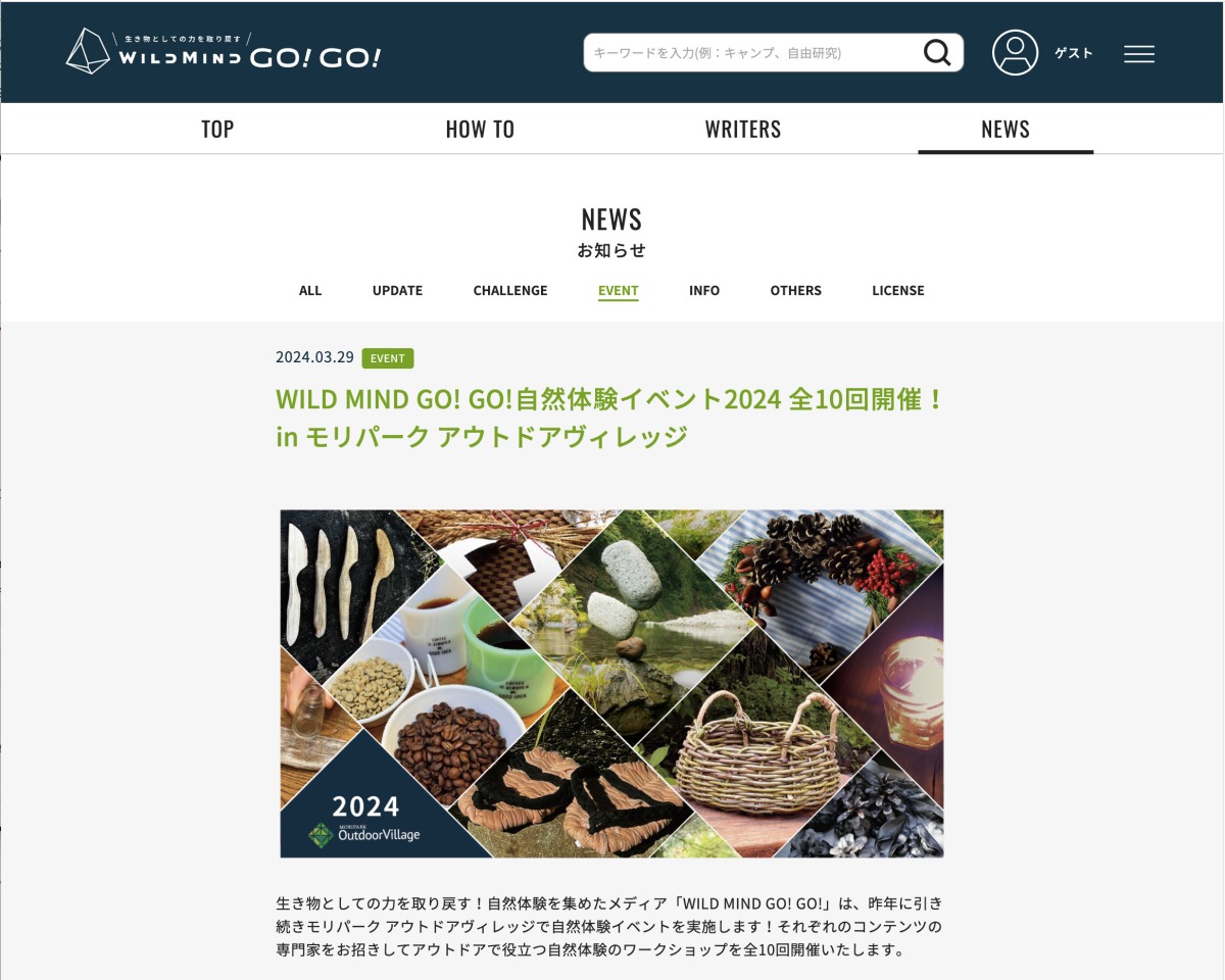 「WILD MIND GO! GO!」は生き物としての力を取り戻すための自然体験を集めた、体験メディアで、今回の焙煎のハウツーもこちらに詳細が紹介されています。