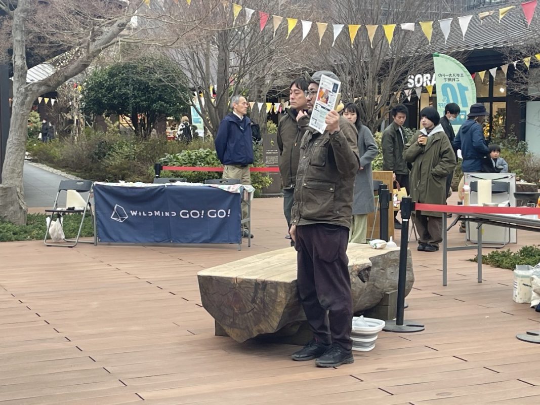 会場はおなじみ、昭島にある「モリパークアウトドアビレッジ」。今回の会場はウッドデッキ広場、講師は農園プランナーで発酵クリエイターの宮原悠さん。フィールドライフ、PEAKSでおなじみのライター、よっちさんもスタンバイ。