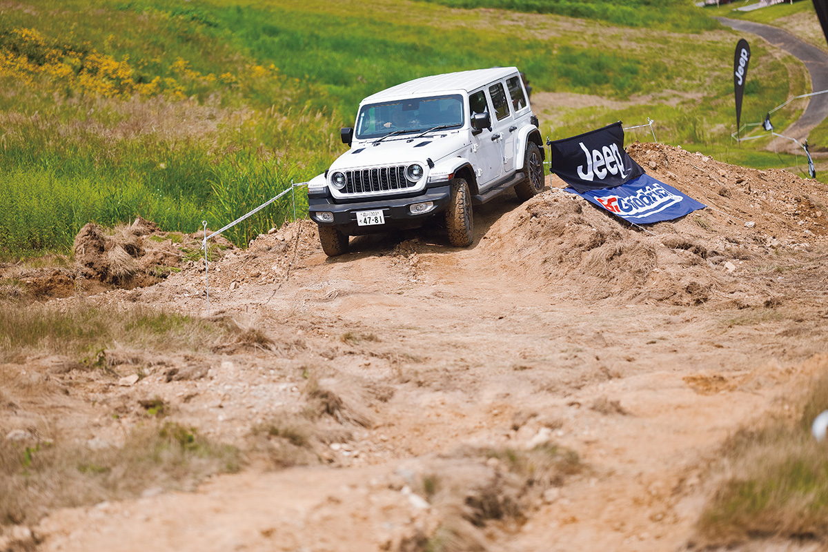 会場内の特設コースにて、参加者がJeep車に同乗してオフロードを体験試乗。急斜面の上り下りや、写真のような大きな凹凸を走るときには思わず「うわっ!」と声が上がるが、Jeep車ならラクラクとクリア。通常ではなかなか体験できない路面の走りを堪能した。