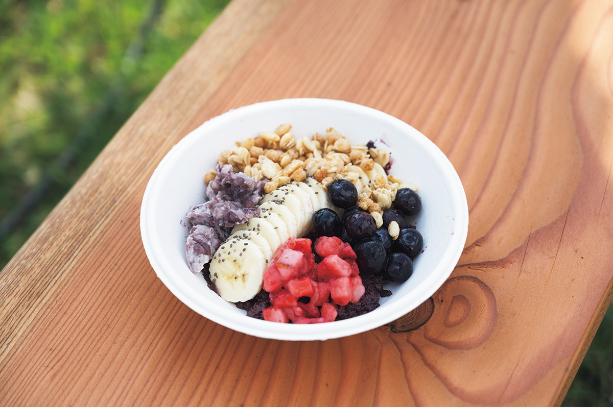 普段は新潟名物、笹団子専門店。ひんやり食感のアサイーボウルにチアシードをトッピング。