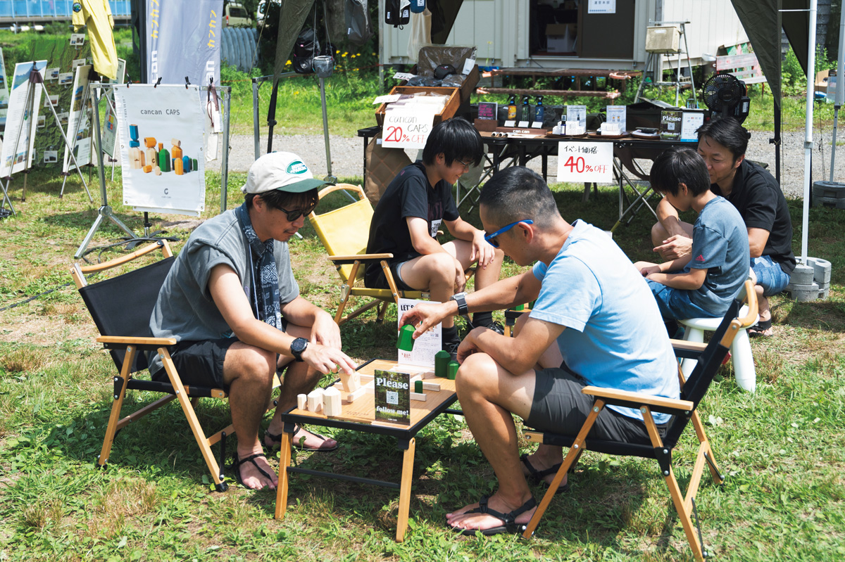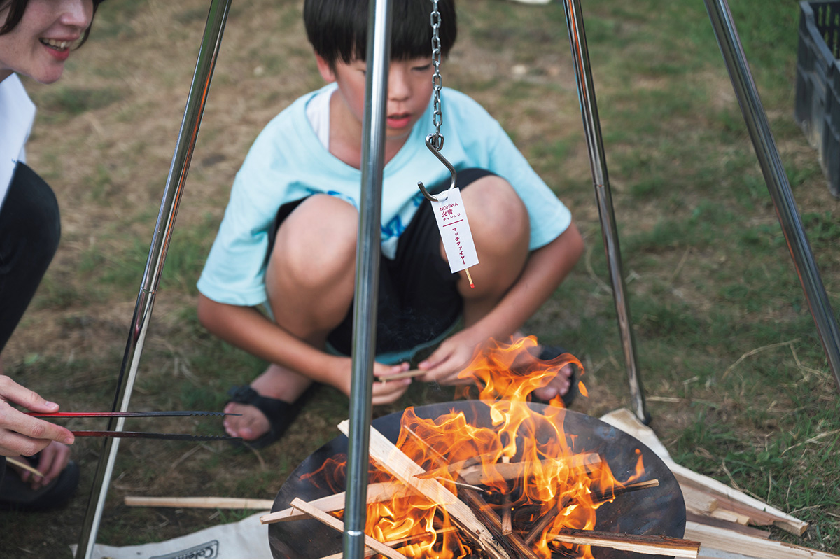 アウトドア×暮らしのショップ、GRID の出店のほか、吊るされたマッチに火をつける早さを競う“マッチファイヤー”も。
